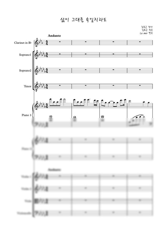 김효근 - 삶이 그대를 속일지라도 (Sop1, Sop2, Ten + 7중주 편곡) by La mer