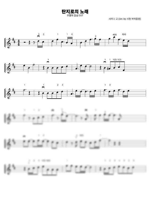 귀멸의 칼날 OST - 竈門炭治郎のうた (탄지로의 노래) (높은음) by 시현🎻0