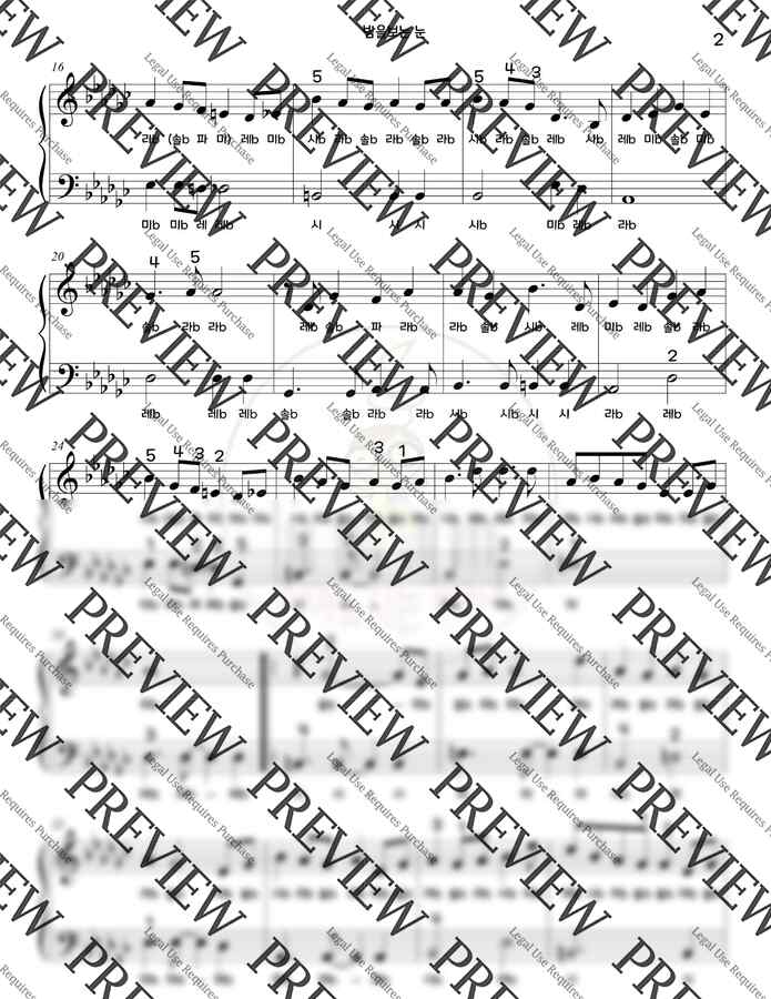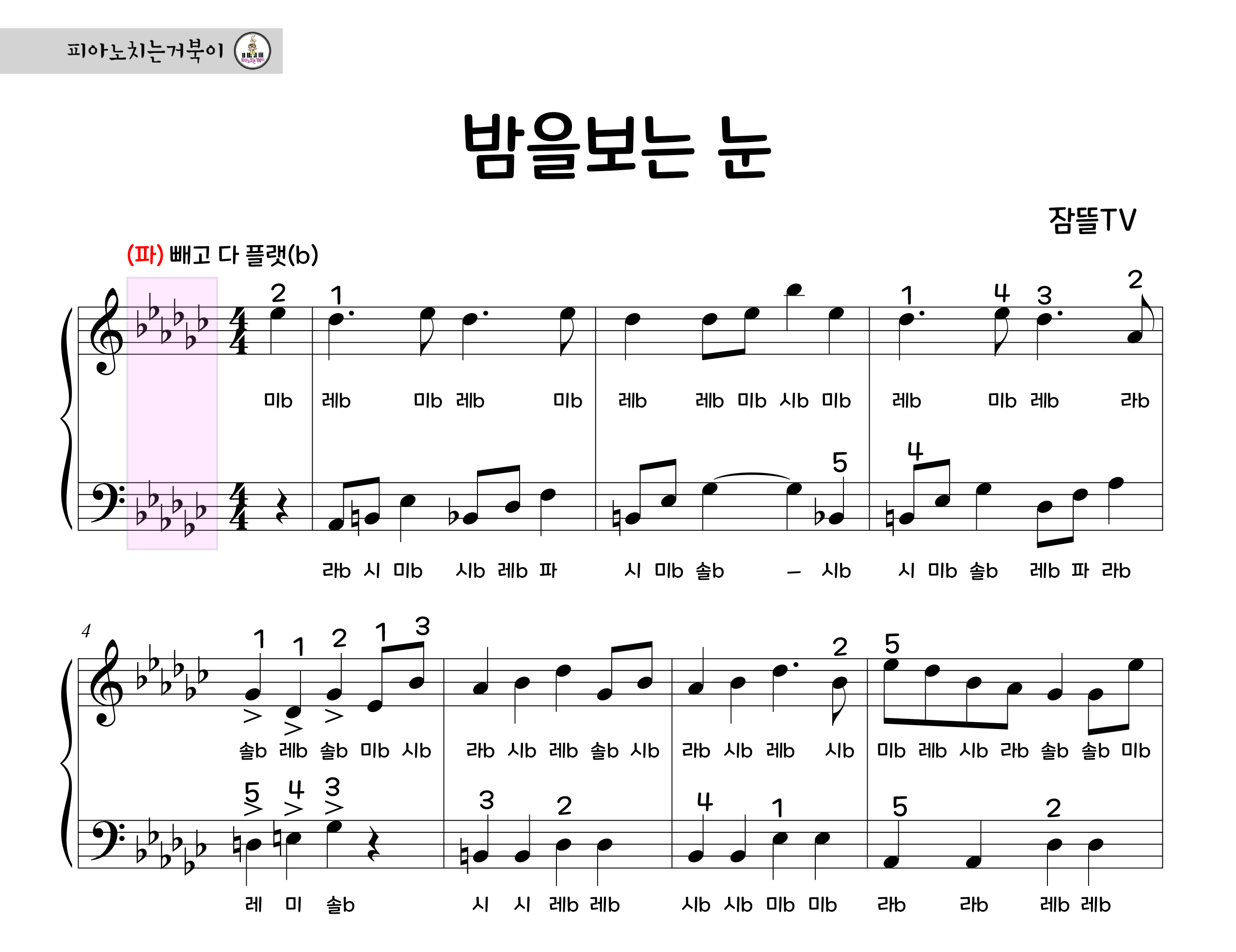잠뜰-밤을 보는 눈(원키)+손번호포함 (계이름악보)입니다 :)