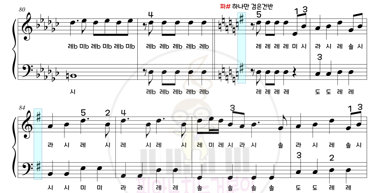 2. 플랫6개 -> 파# 조옮김하는 부분에 색을넣어 눈에 잘 보이도록 함