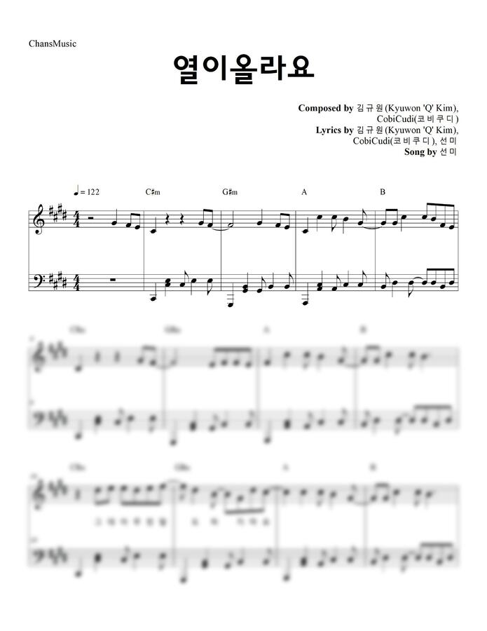 선미의 열이올라요 피아노 커버 악보 쉬운 버전입니다^^