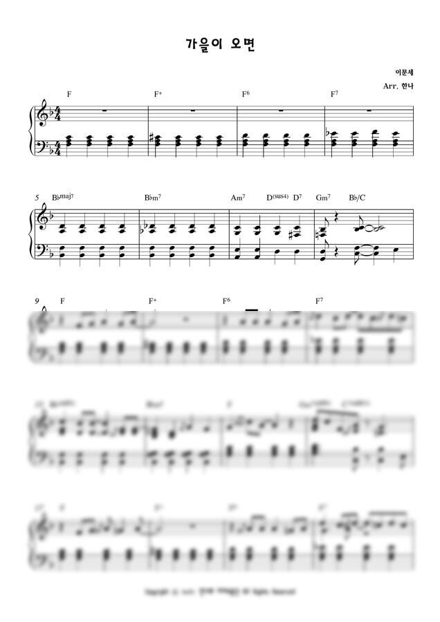 이문세 - 가을이 오면 (중급 악보) by 한나