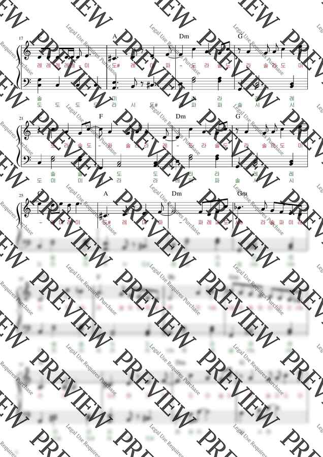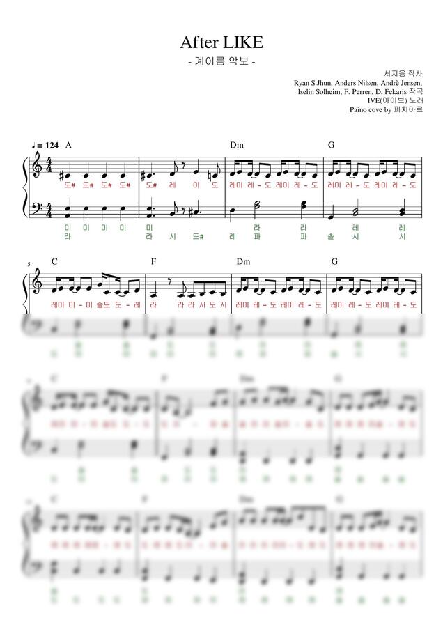 3:51 계이름 악보 왼손만 연주(오른손 멜로디를 치면서 듀엣처럼 연주 하기)