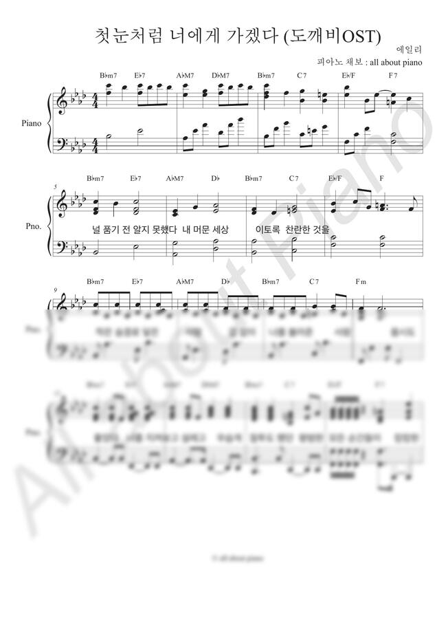 에일리 - 첫눈처럼 너에게 가겠다(도깨비OST) (피아노 반주) by all about piano