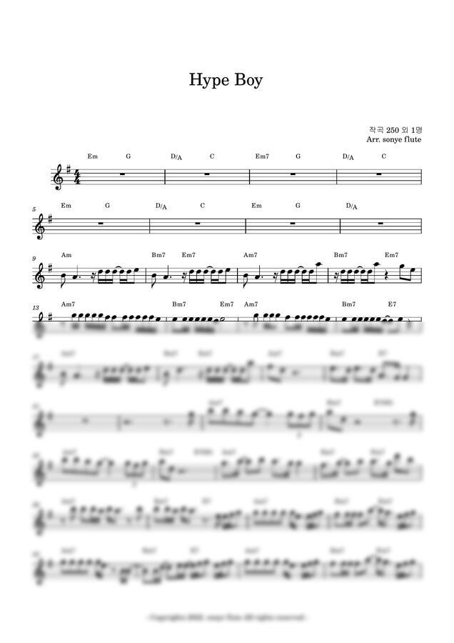 바이올린, 클라리넷, 색소폰, 오보에, 트럼펫 연주를 위한 한 옥타브 내린 악보도 함께 제공합니다 :)