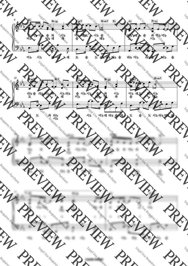 이 악보는 원곡 조성인 내림 마장조 편곡으로 <계이름 악보> 입니다.