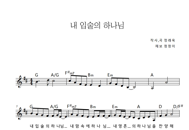 정래욱 (노아키즈) - 내 입술의 하나님 (D Major 멜로디 악보) by 청청이