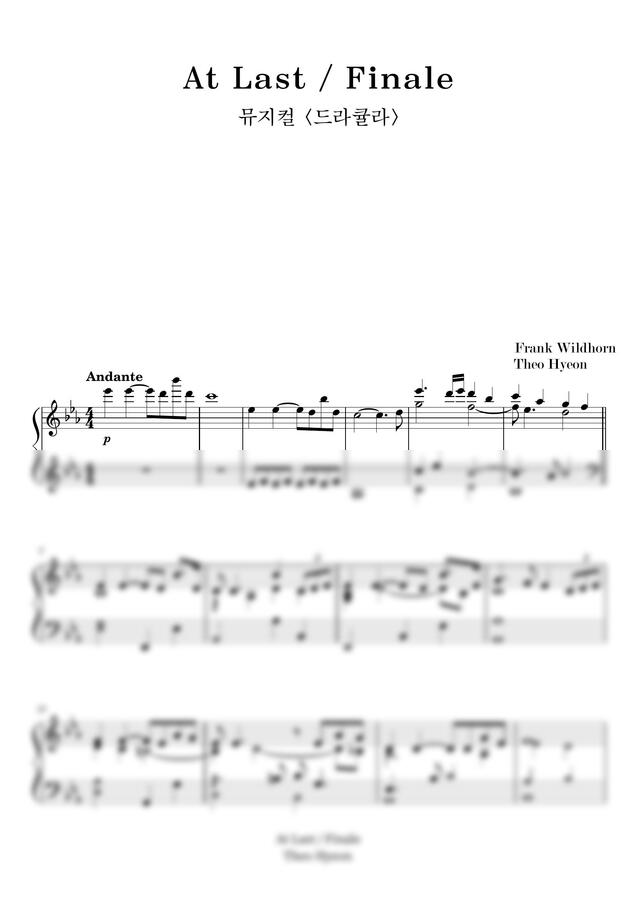 뮤지컬 드라큘라 중 At Last / Finale 넘버의 피아노 2단 악보입니다.