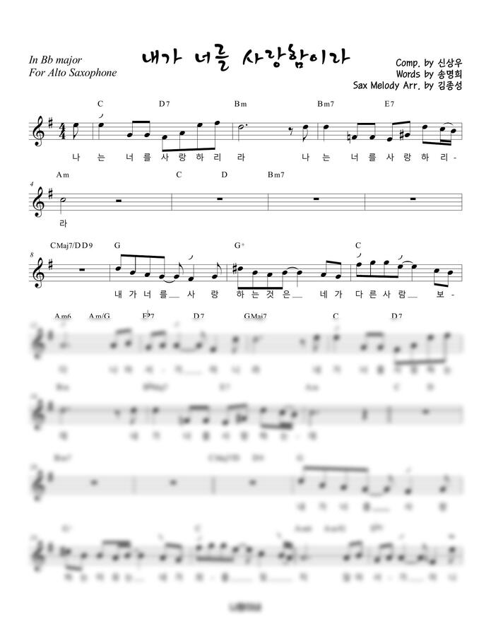 송명희 가사, 신상우 곡의 '내가 너를 사랑함이라' 색소폰 솔로 연주용 악보올립니다.