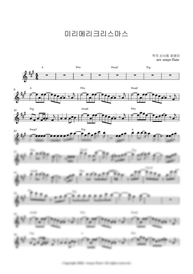 아이유 - 미리메리크리스마스 (플룻 멜로디 악보) by sonye flute