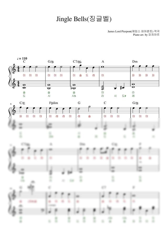 Jingle Bells (징글벨) (쉬운 계이름 악보) by 피치아르