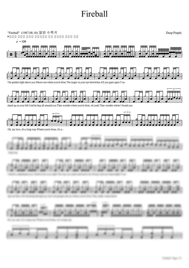 Deep Purple - Fireball by 카피드럼 1p 미리보기