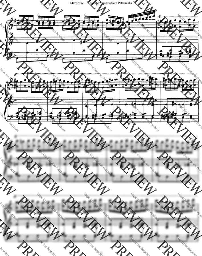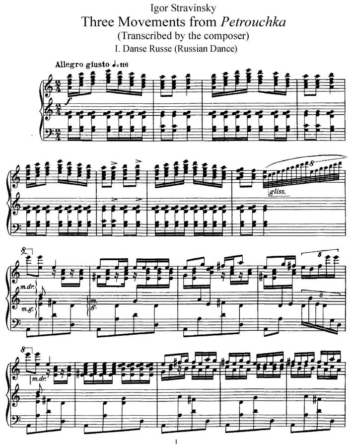 1911년에 작곡된 유명한 발레 '페트루슈카'에서 몇몇 부분을 피아노를 위해 편곡해서 탄생한 곡이 바로 이 곡입니다.