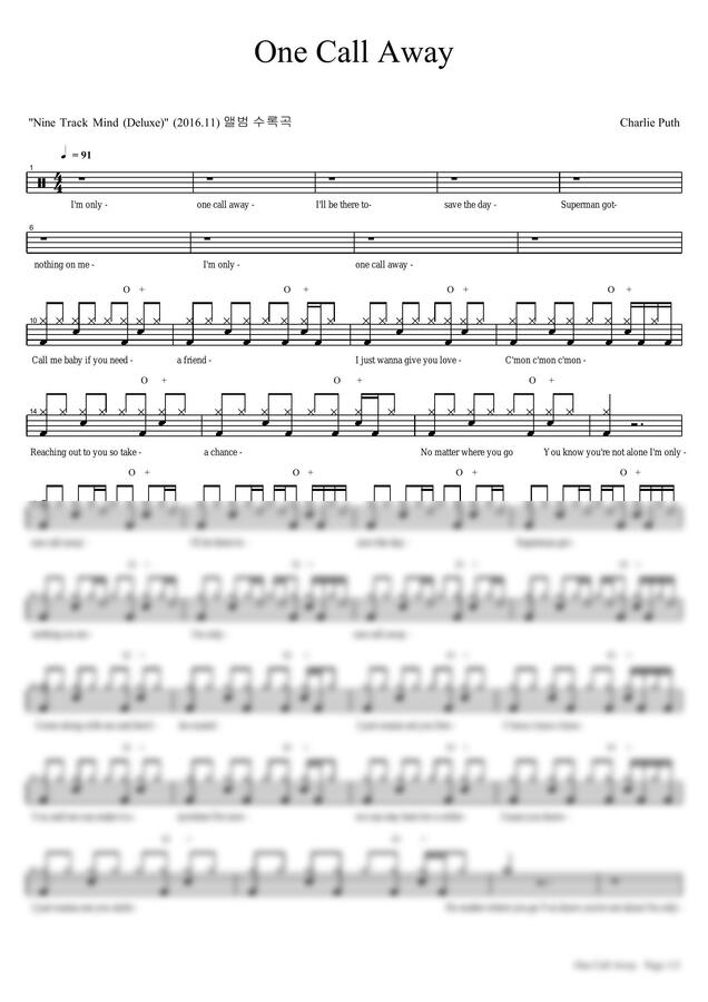 Charlie Puth - One Call Away by 카피드럼
