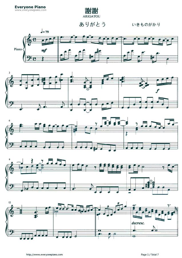 이키모노가카리 - ありがとう (고마워) by Everyone Piano