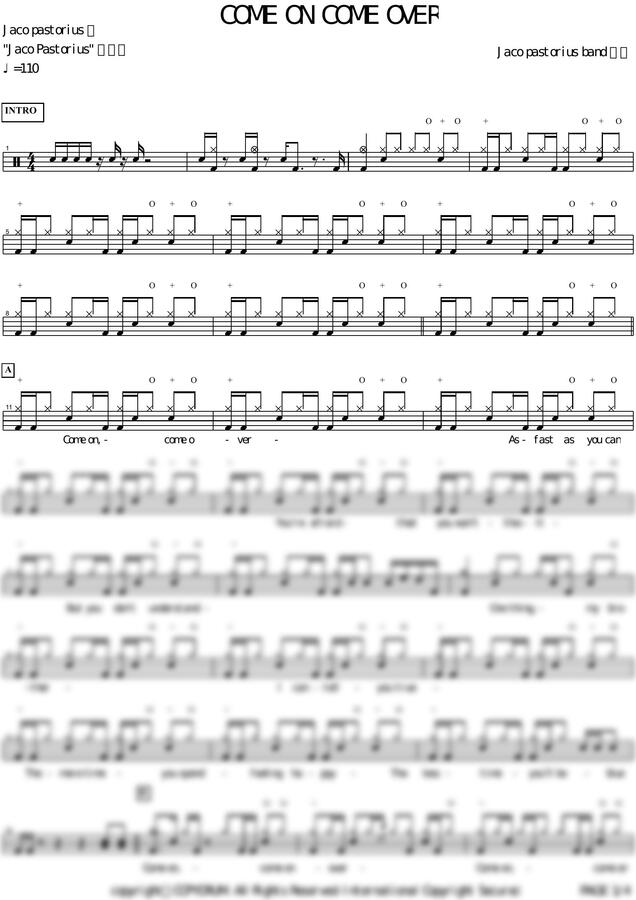 Jaco Pastorius - Come On Come Over by 카피드럼 1p 미리보기
