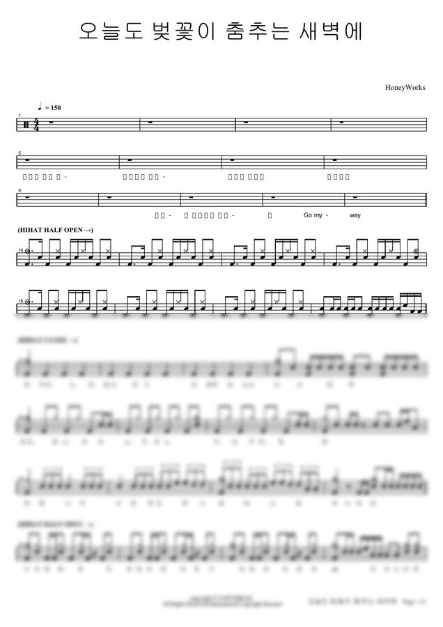 HoneyWorks - 오늘도 벚꽃이 춤추는 새벽에 by 카피드럼