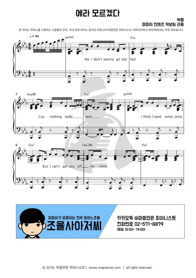 어제 자정 발매된 빅뱅의 '에라 모르겠다' 피아노 편곡 2단 악보입니다.