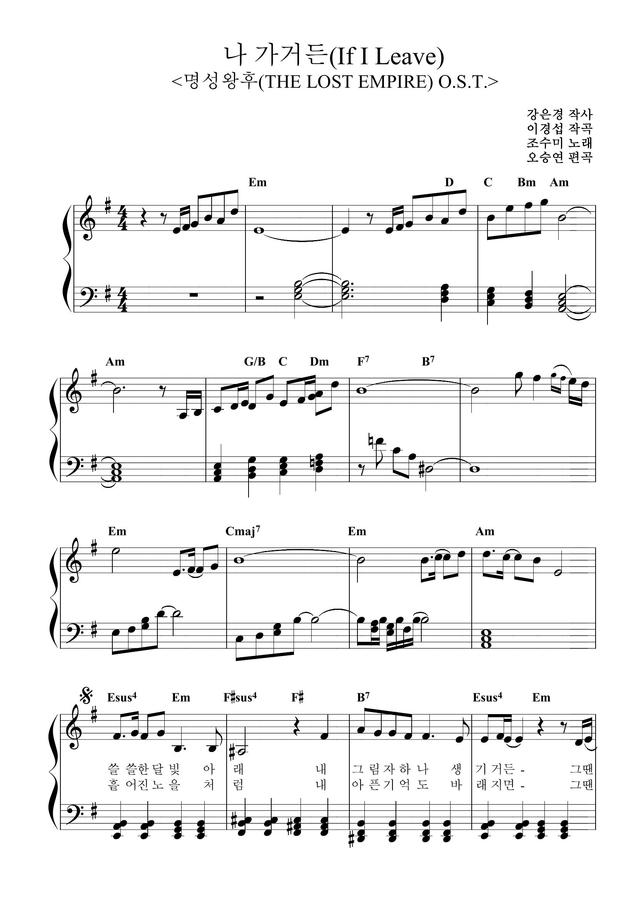 조수미 - 나가거든(If I Leave) [명성황후 OST]