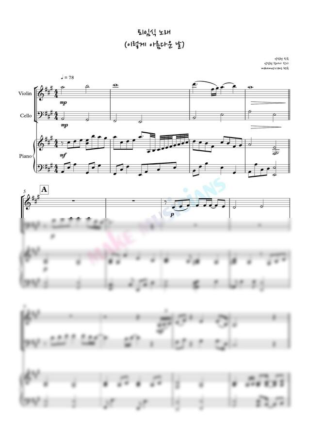 퇴임식 노래 연주버전 트리오 편곡입니다