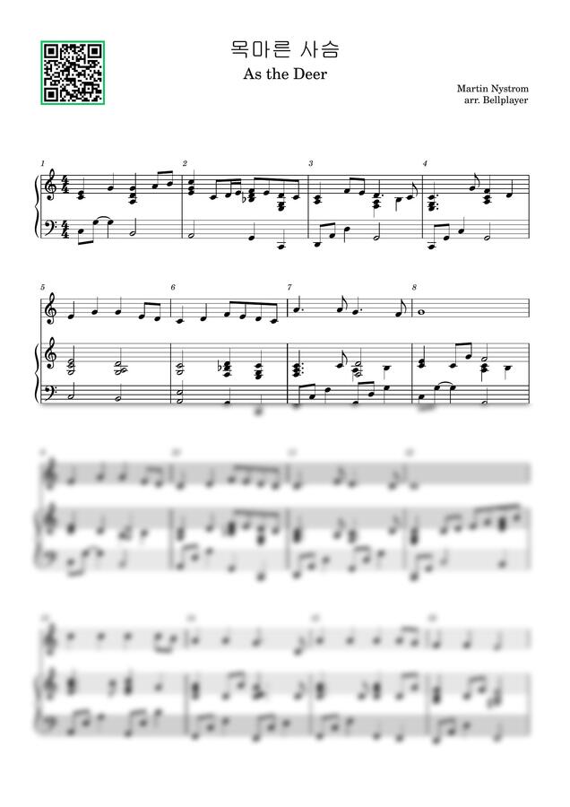 Martin J. Nystrom - 목마른 사슴 (As the Deer) (C조 핸드벨8음 반주악보) by Bellplayer