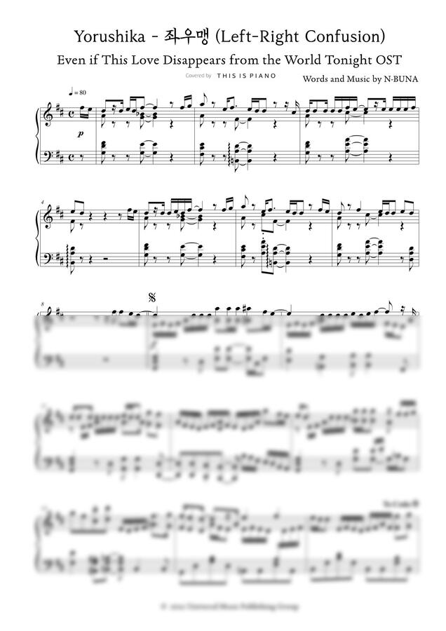 영화 『오늘 밤, 세계에서 이 사랑이 사라진다 해도』 OST, 좌우맹 입니다.