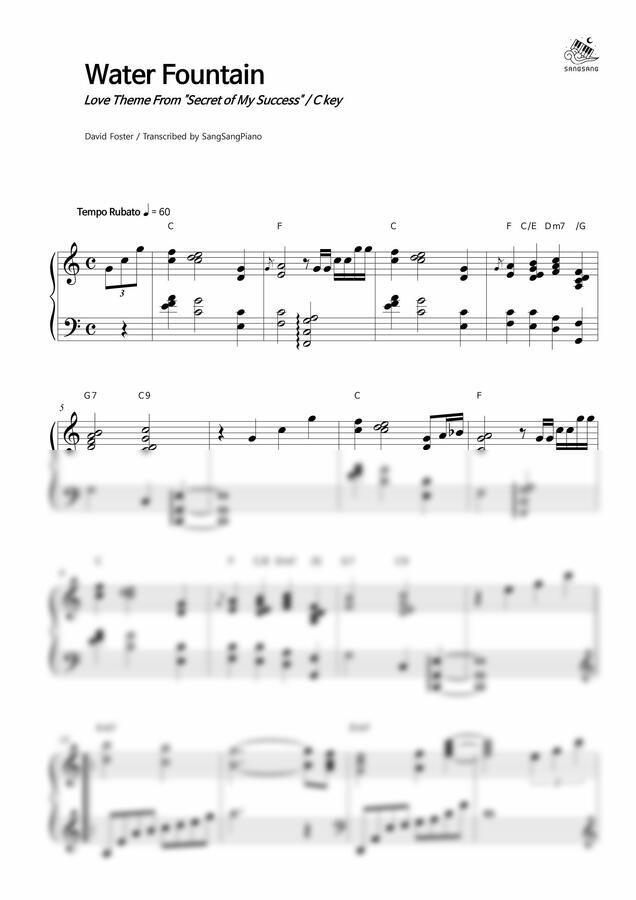 David Foster - Water Fountain (쉬운 악보, C key) by 상상피아노