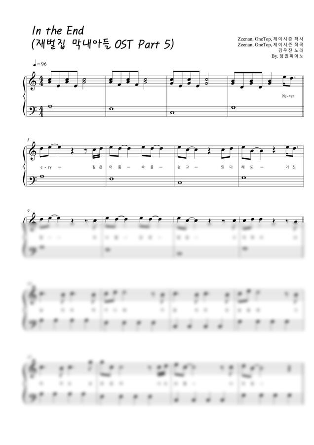 김우진 - In the End (재벌집 막내아들 OST, 다장조 쉬운악보) by 펭귄피아노1