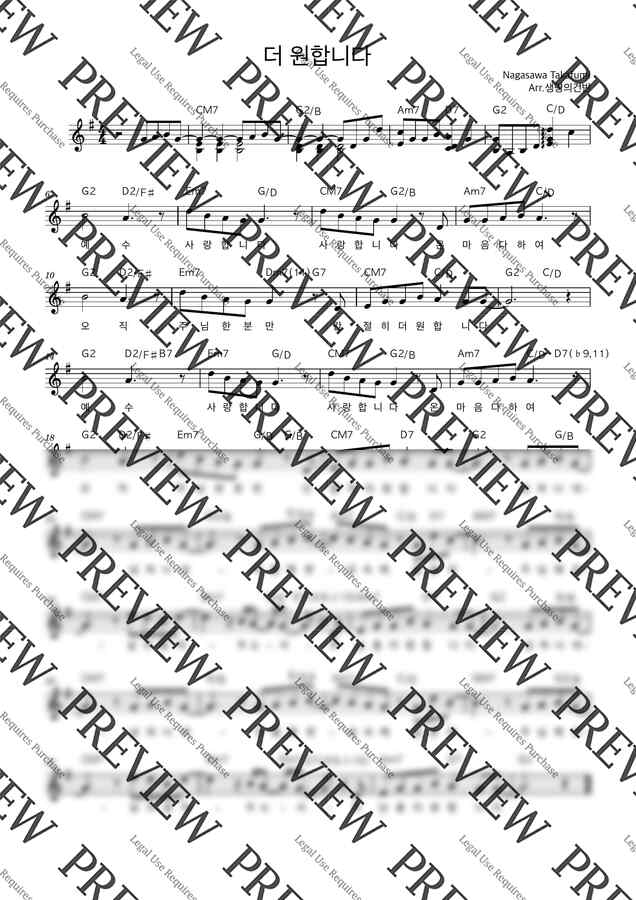 나가사와 타카후미 - 더 원합니다 (I want you more) (G key 멜로디악보) by 생명의건반