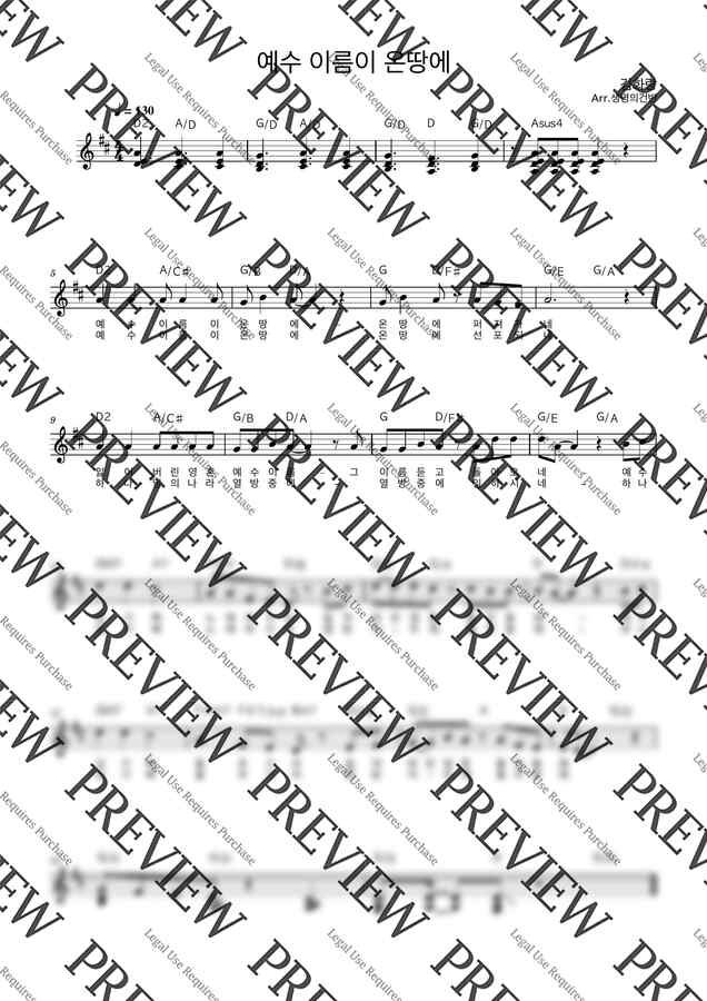 김화랑 - 예수 이름이 온땅에 (D key 멜로디 악보) by 생명의건반