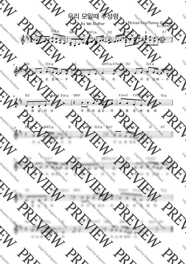 Michael Fay, Rhomas W.Coomes - 우리 모일때 주성령 (As We Gather) (D key 멜로디 악보) by 생명의건반