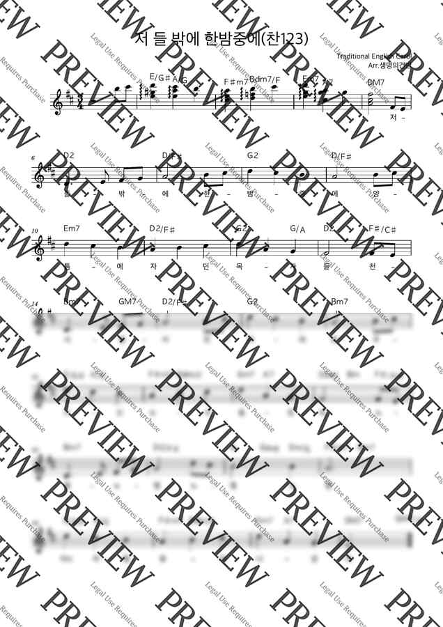 찬송가 123장 - 저 들 밖에 한밤중에 (The Frist Noel) (D key 멜로디 악보) by 생명의건반