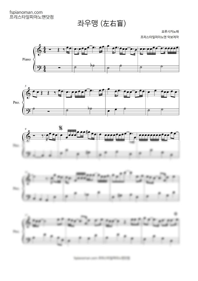 요루시카 - 左右盲 (좌우맹) (오늘 밤, 세계에서 이 사랑이 사라진다 해도 OST) (다장조,계이름악보 포함) by 프리스타일피아노맨닷컴1
