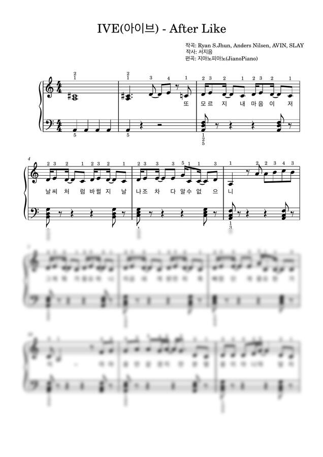 IVE (아이브) - After LIKE (일반, 손가락번호, 가사) by 지아노피아노(JianoPiano)