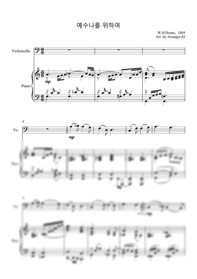 찬송가 144장 - 예수 나를 위하여 (첼로 & 피아노, 묵상찬양,고난주간 헌금송) by Arranger-SJ