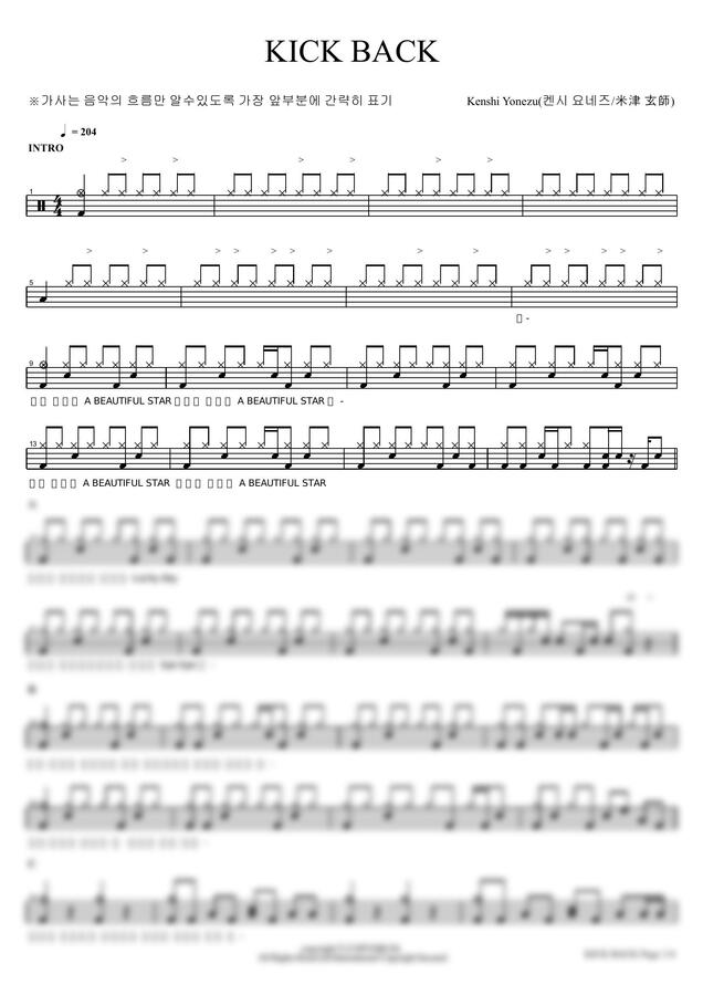 요네즈 켄시 - KICK BACK by 카피드럼