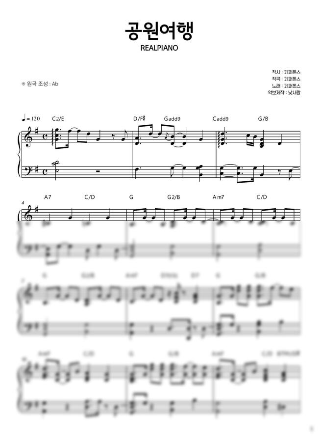 페퍼톤스 - 공원여행 (쉬운키 G) by 낮사람