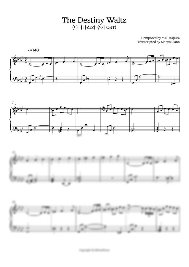 바니타스의 수기 OST중, The Destiny Waltz의 피아노 악보입니다.