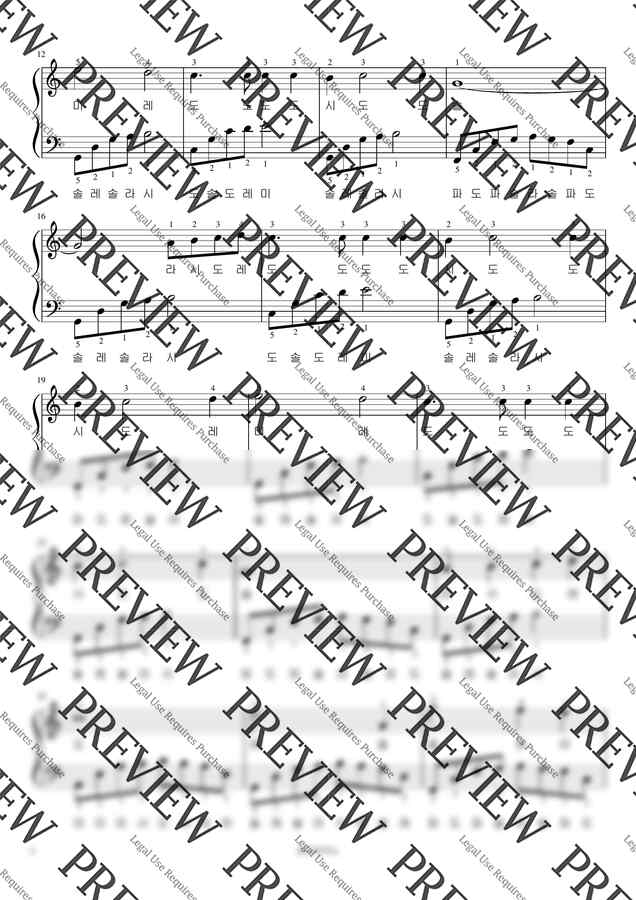 양손번호적힌 악보와 계이름이 모두 써진 악보