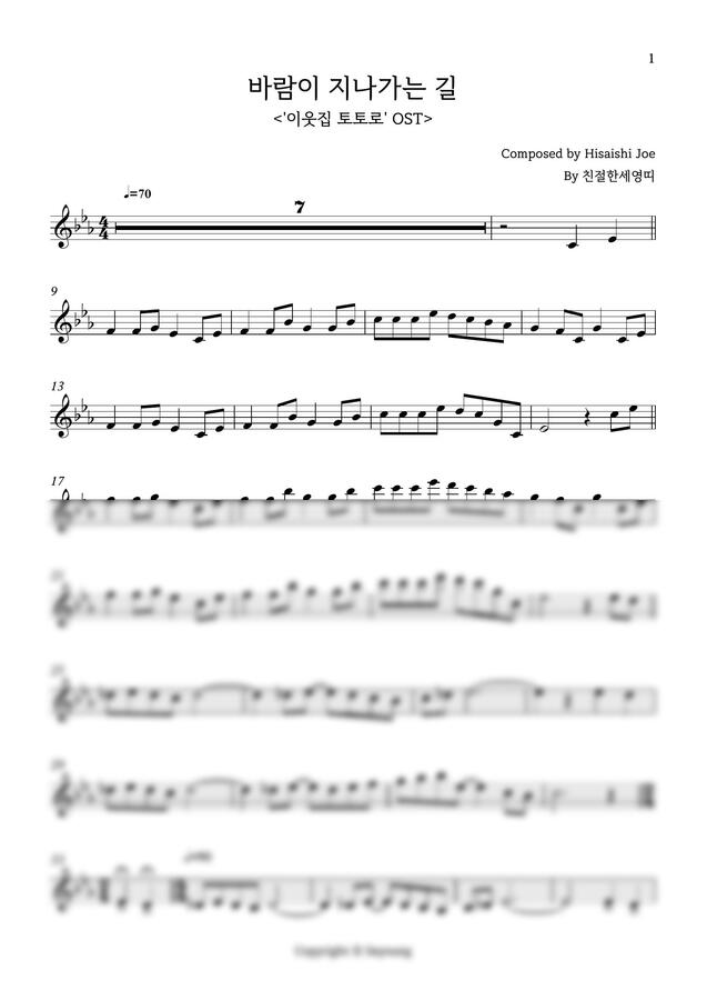 바람이 지나가는 길 피아노 3단 + 각 파트보