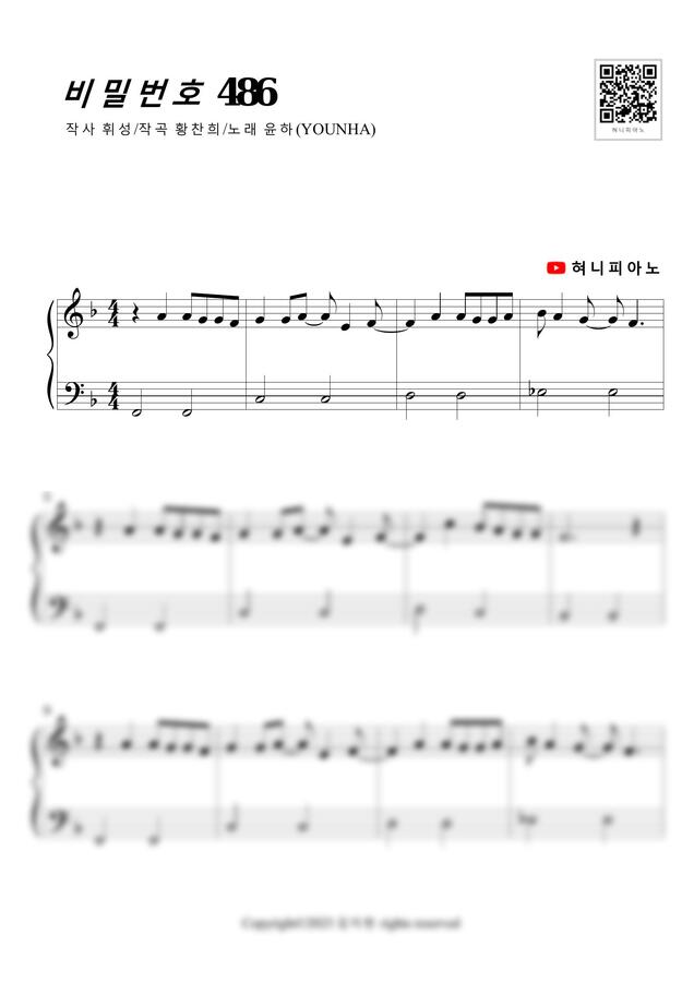 윤하 (YOUNHA) - 비밀번호 486 (매우쉬운악보,짧음) by 혀니피아노