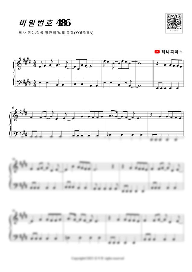윤하 (YOUNHA) - 비밀번호 486 (쉬운 악보, 짧음) by 혀니피아노