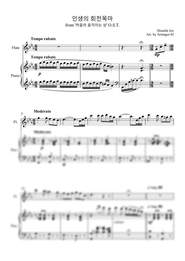 하울의 움직이는 성 OST - 人生のメリ-ゴ-ランド (인생의 회전목마) (플륫과 피아노 듀엣) by Arranger-SJ