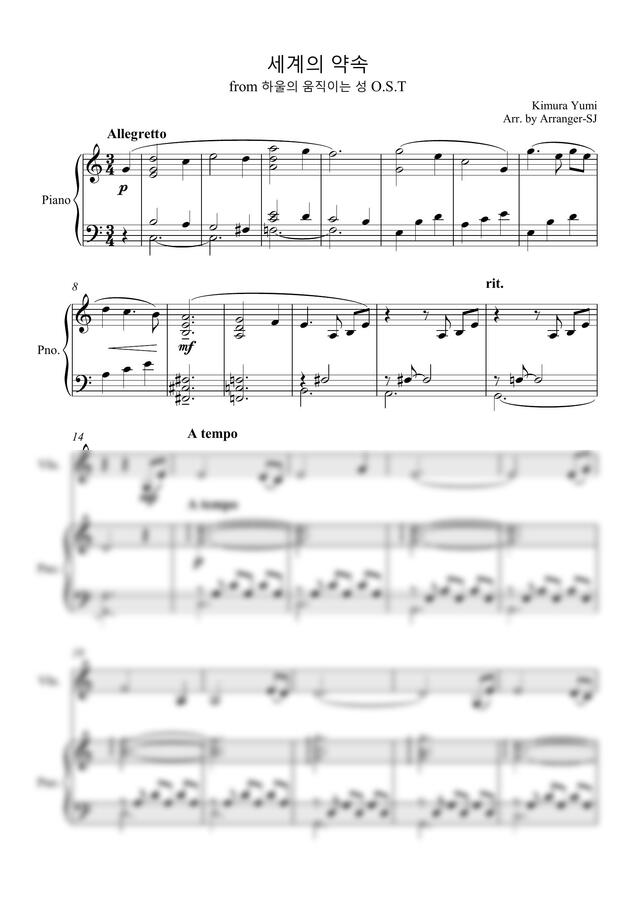 하울의 움직이는 성 OST - 世界の約束 (세계의 약속) (바이올린과 피아노) by Arranger-SJ