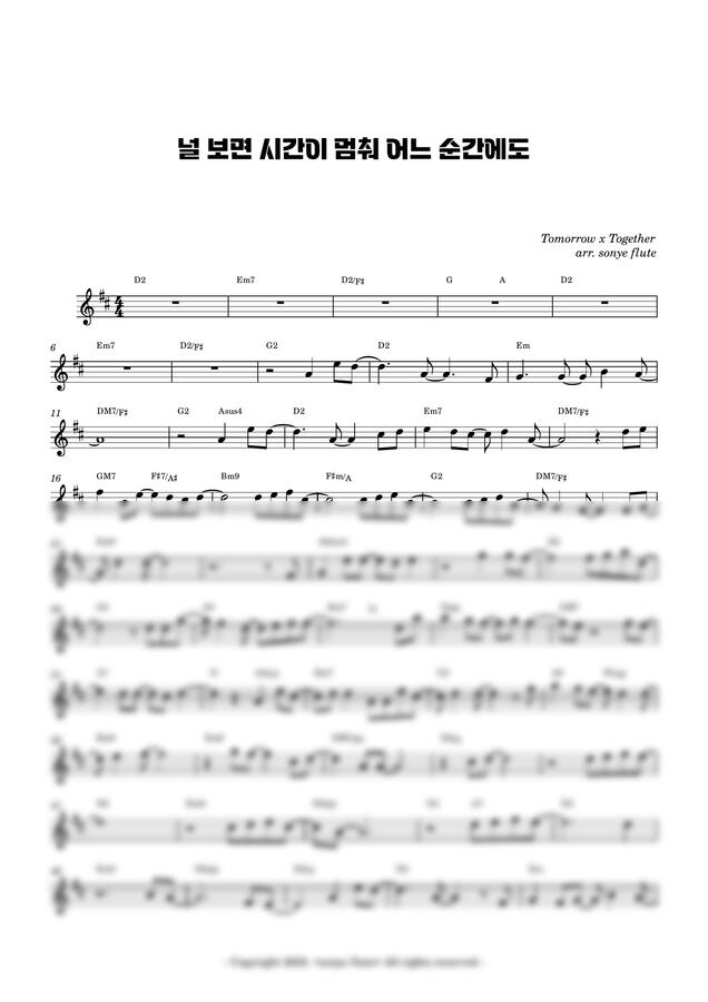 투모로우바이투게더 - 널 보면 시간이 멈춰 어느 순간에도 (플룻 멜로디 악보) by sonye flute