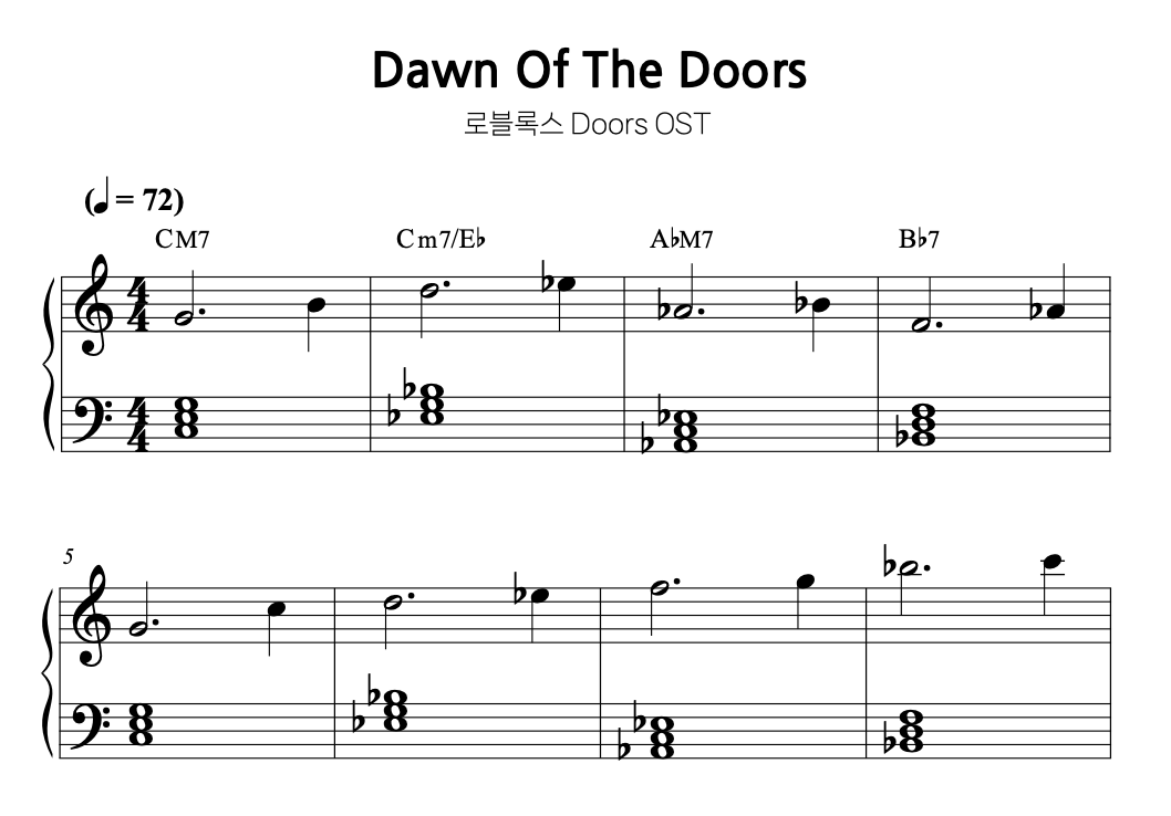 로블록스 도어즈 OST - Dawn Of The Doors (쉬운악보 포함) by PARADO