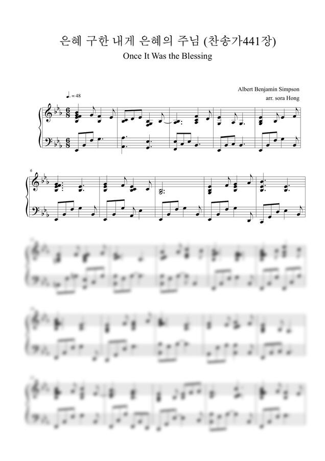 찬송가441장-은혜 구한 내게 은혜의 주님 피아노연주입니다~