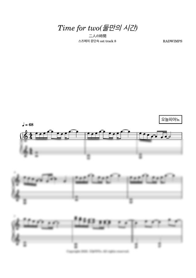 스즈메의 문단속 OST - 二人の時間 (Time for two, 둘만의 시간) (브금 8번) by 오늘피아노1