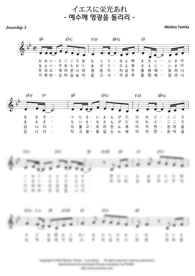 개별 악보를 원하는 분들이 계셔서 "예수께 영광을 돌리리 (イエスに栄光あれ)"라는 찬양 올립니다.