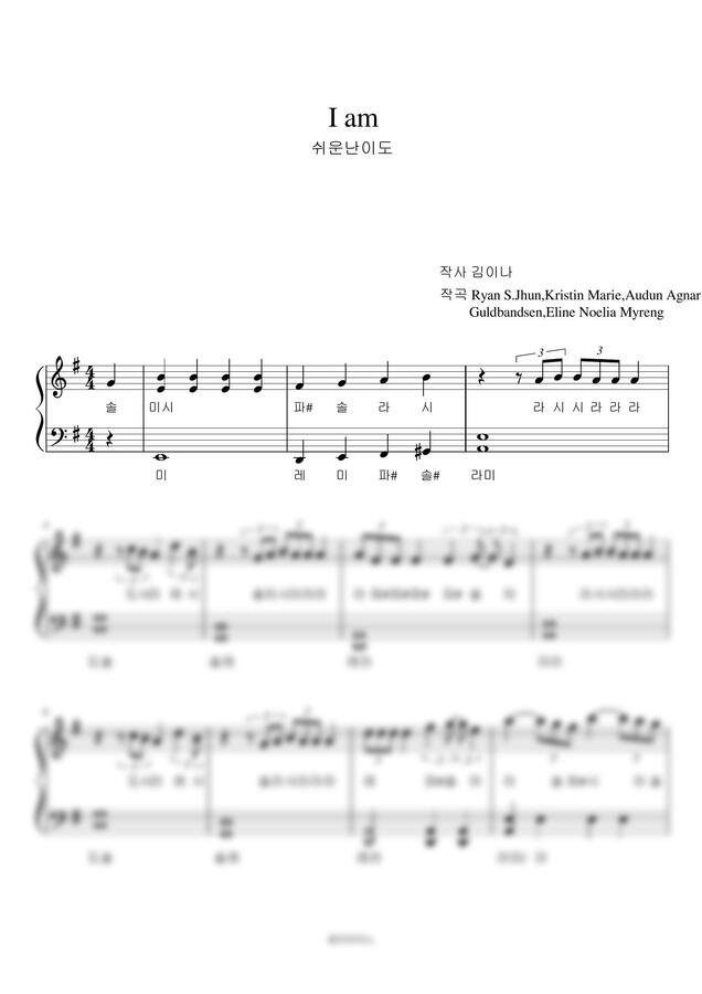 IVE (아이브) - I AM (쉬운악보, 오른손 번호+계이름) by 셀라피아노